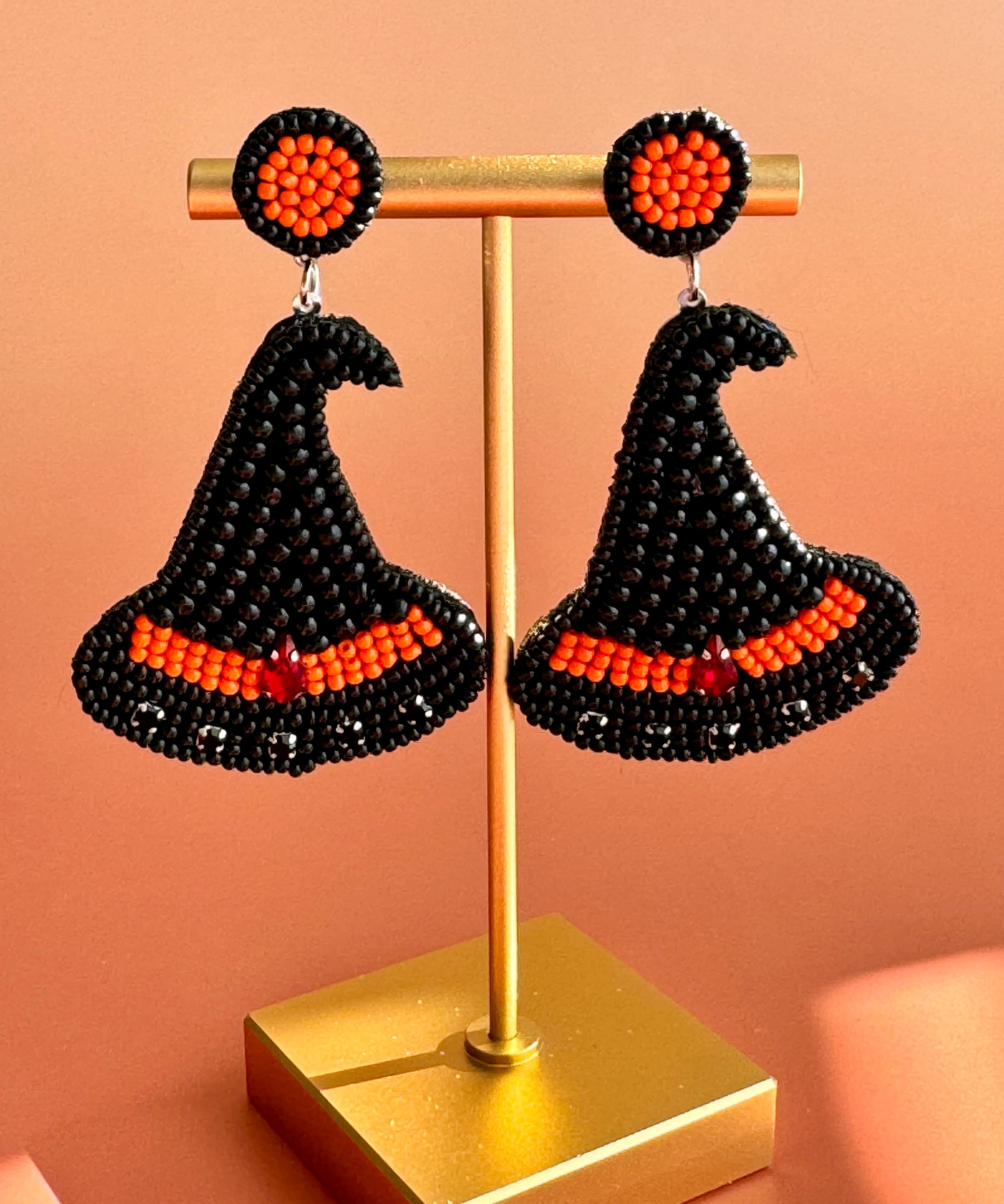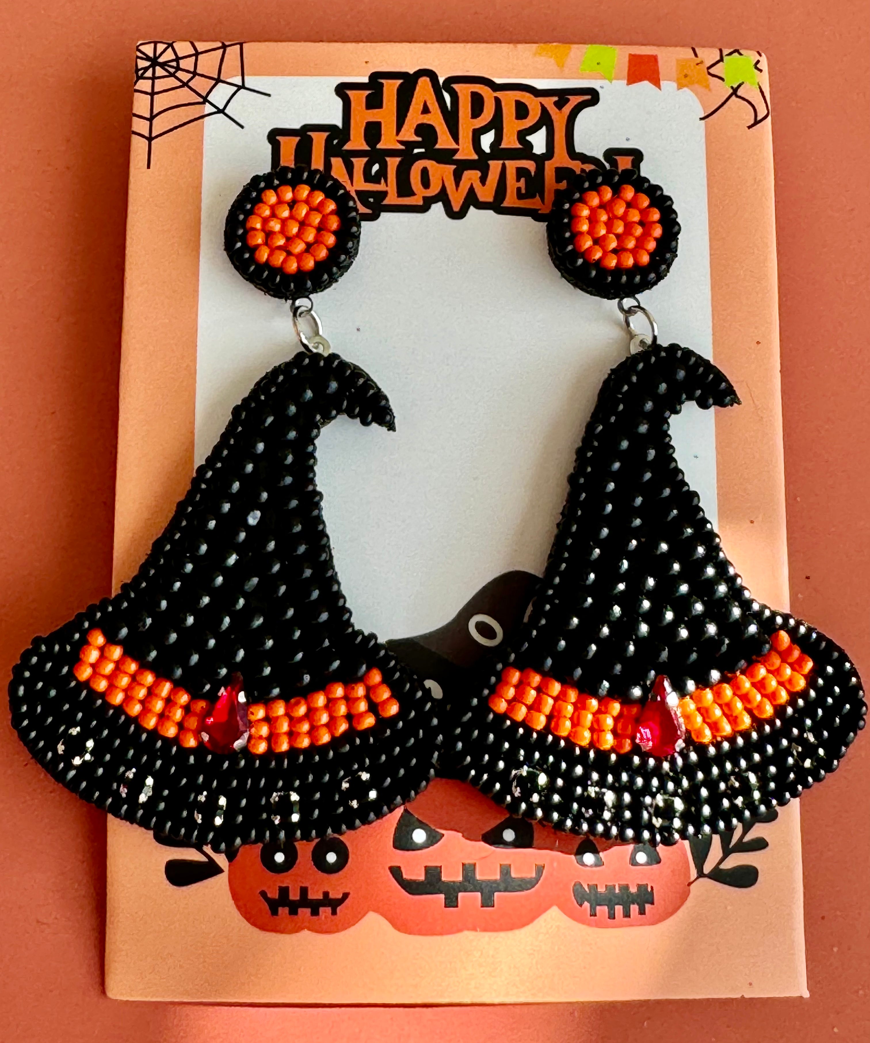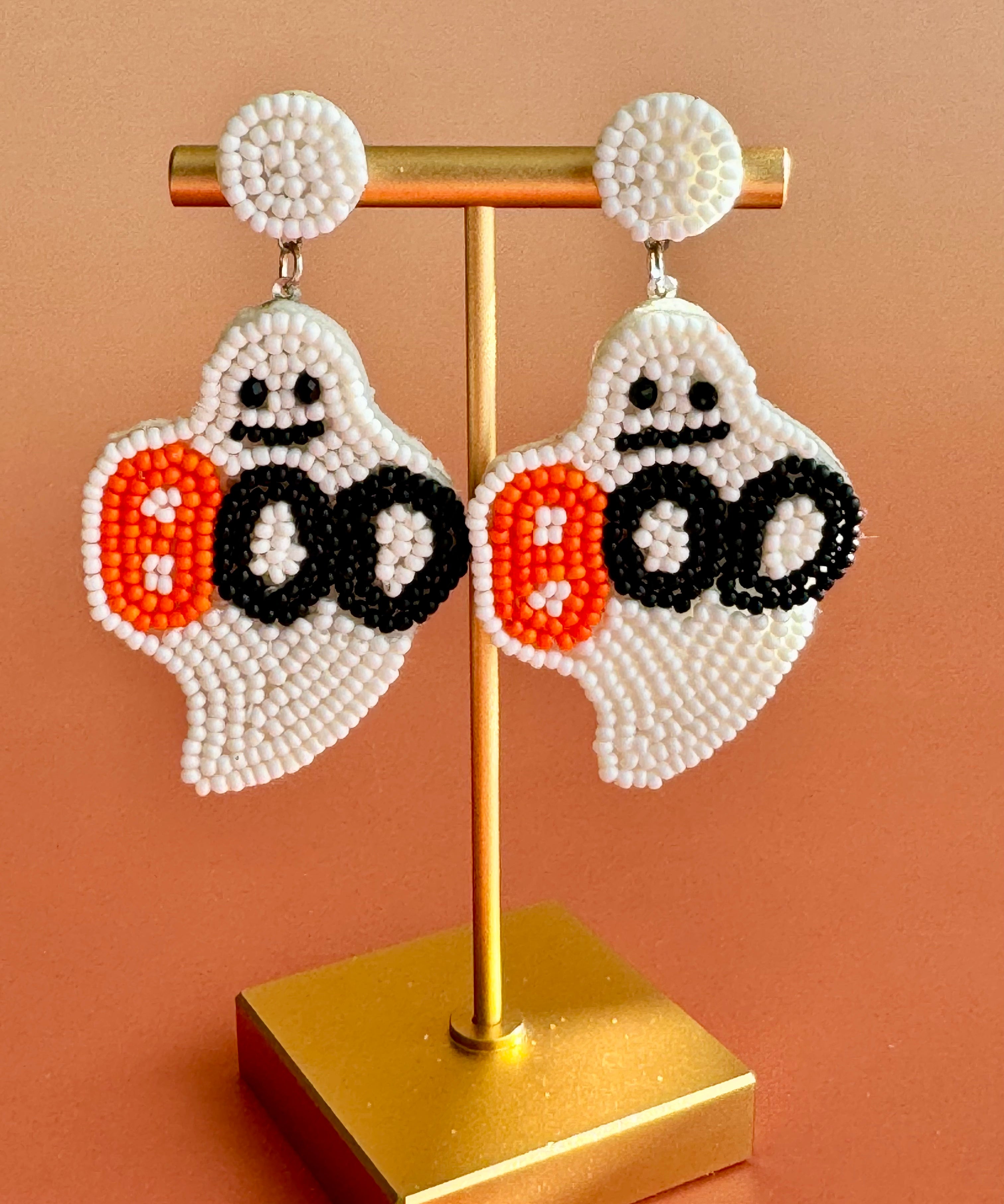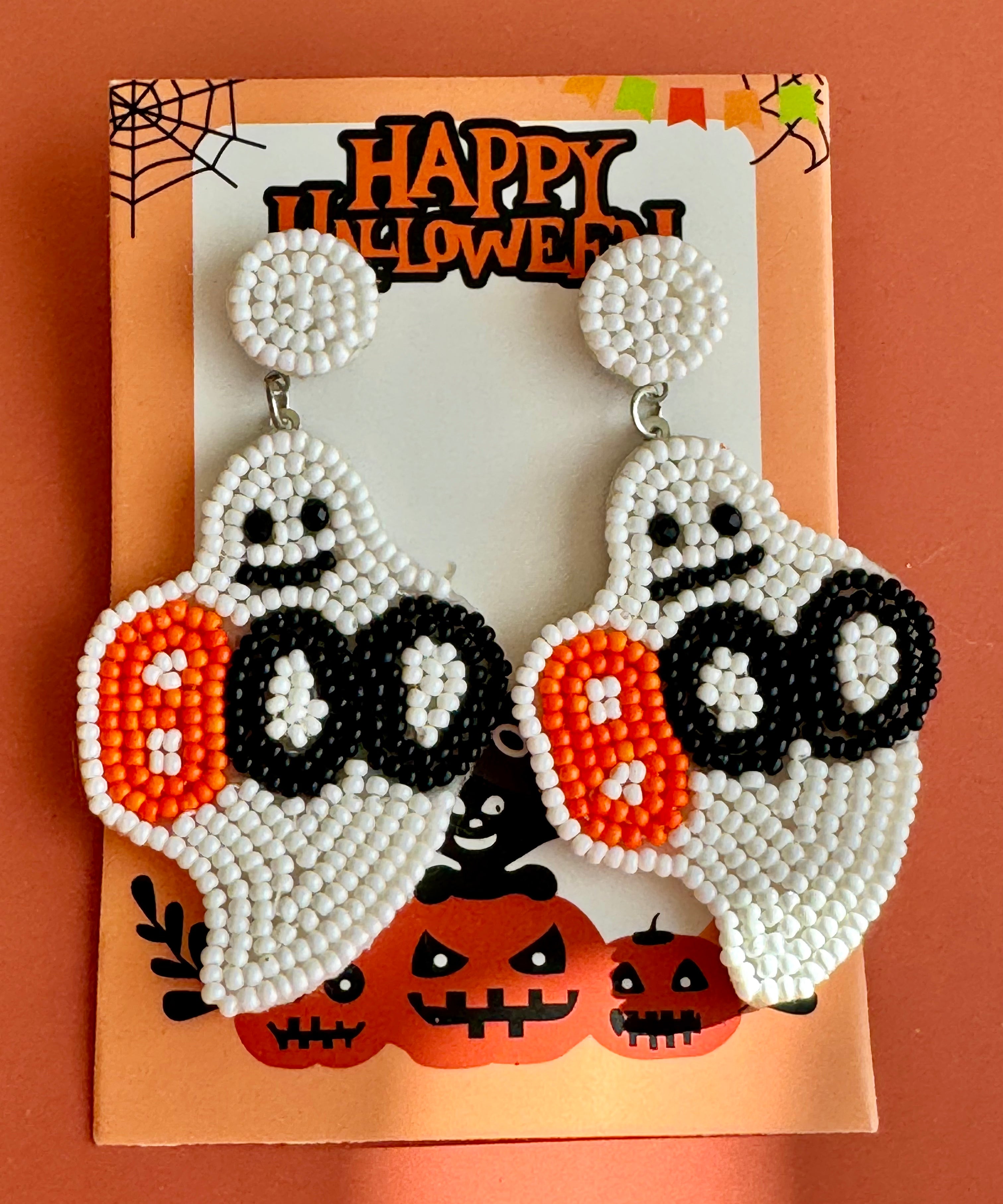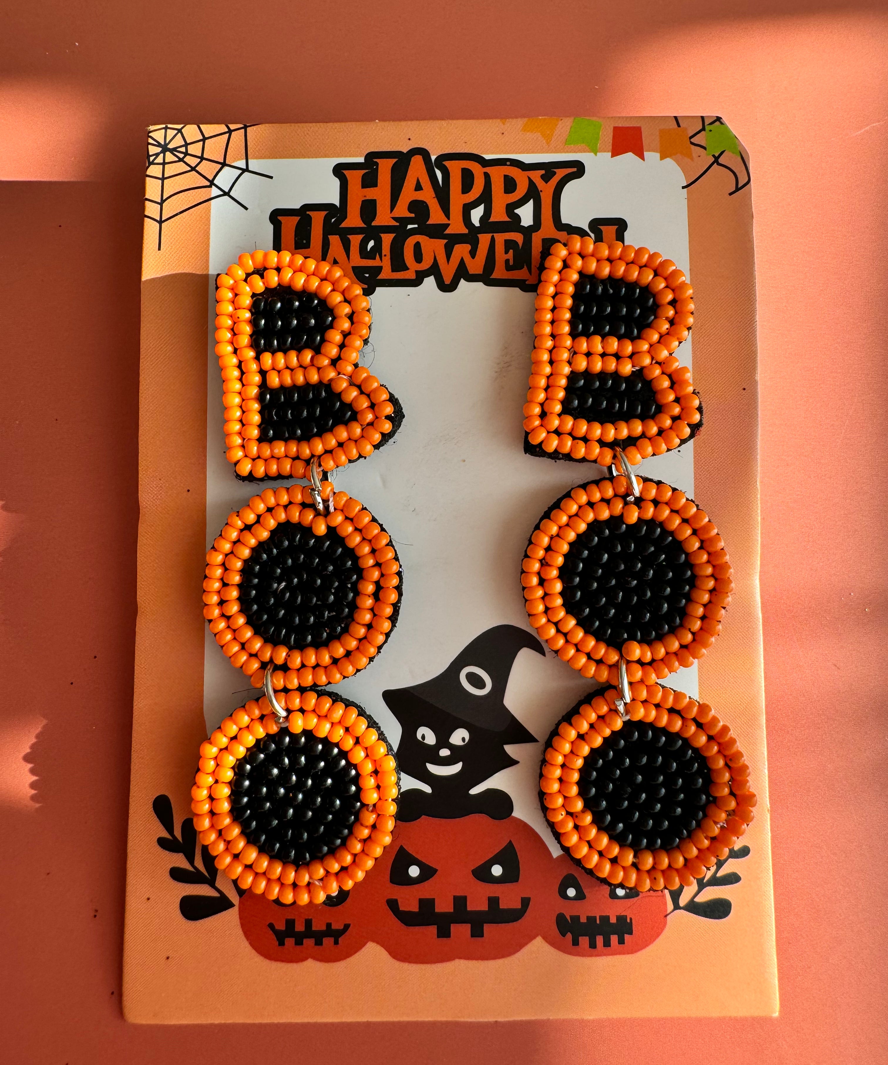 Handmade Halloween Beaded Earrings: Boho BOO Dangle