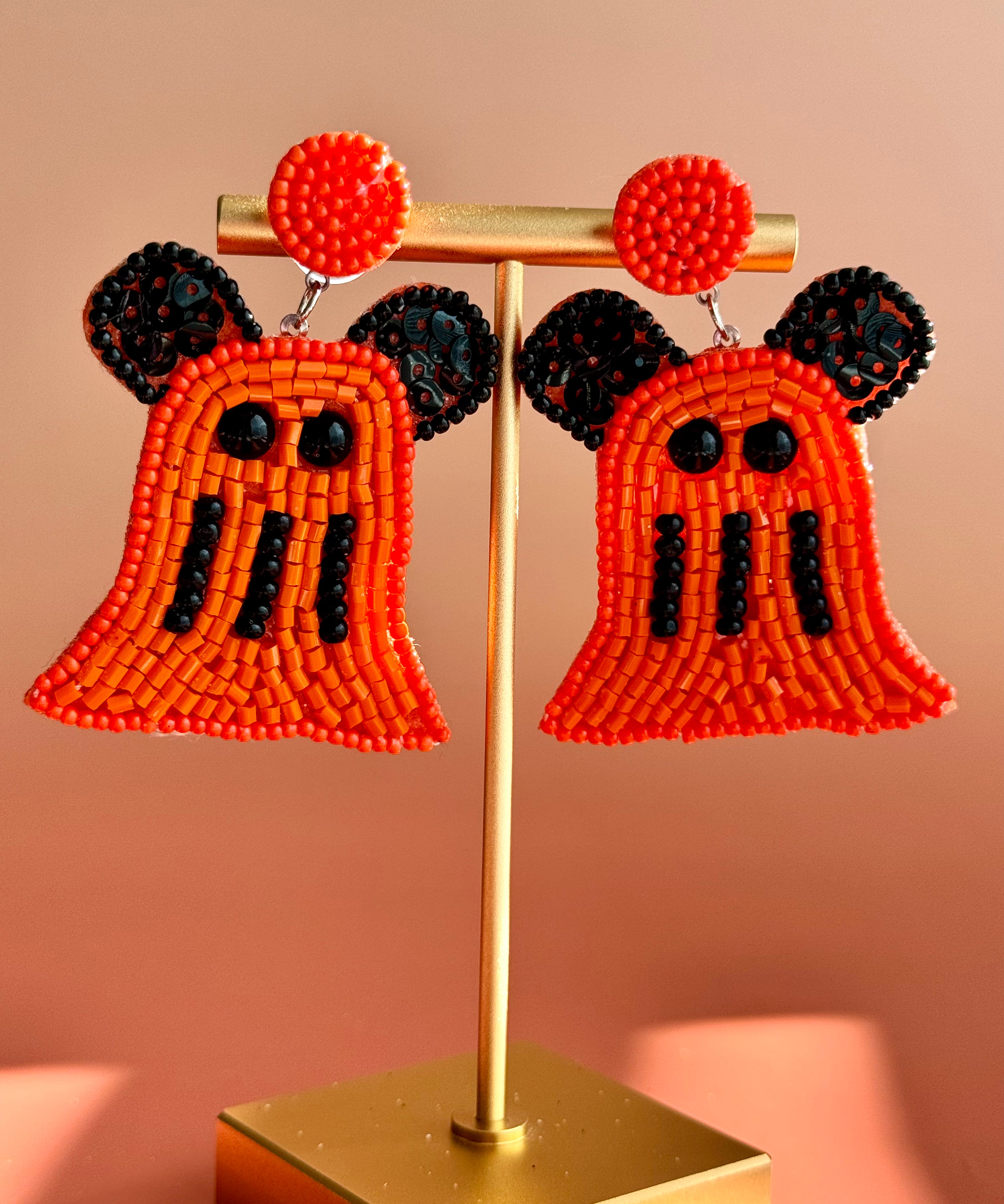 Handmade Halloween Ghost Earrings: Boho Beaded Mickey Mouse