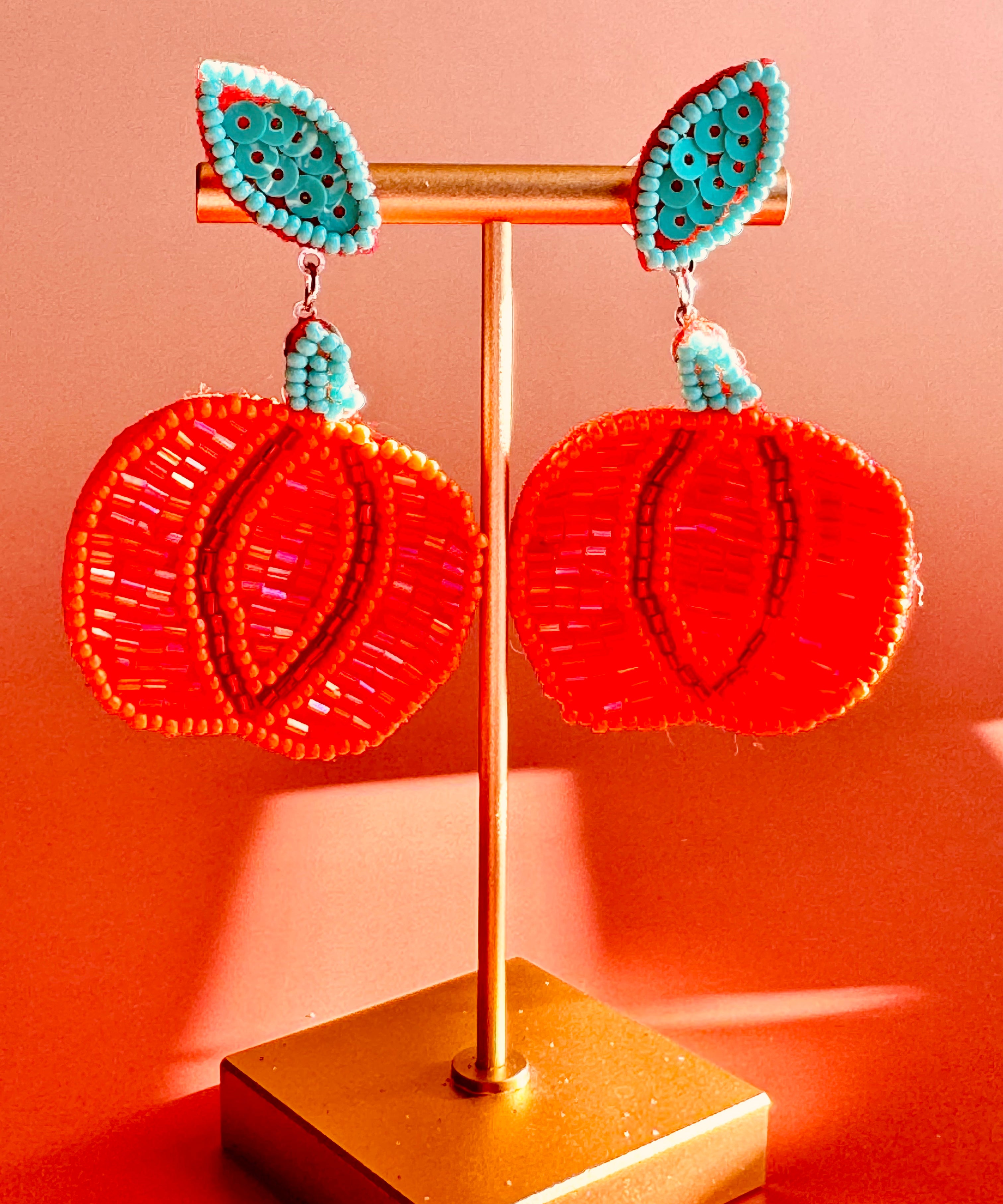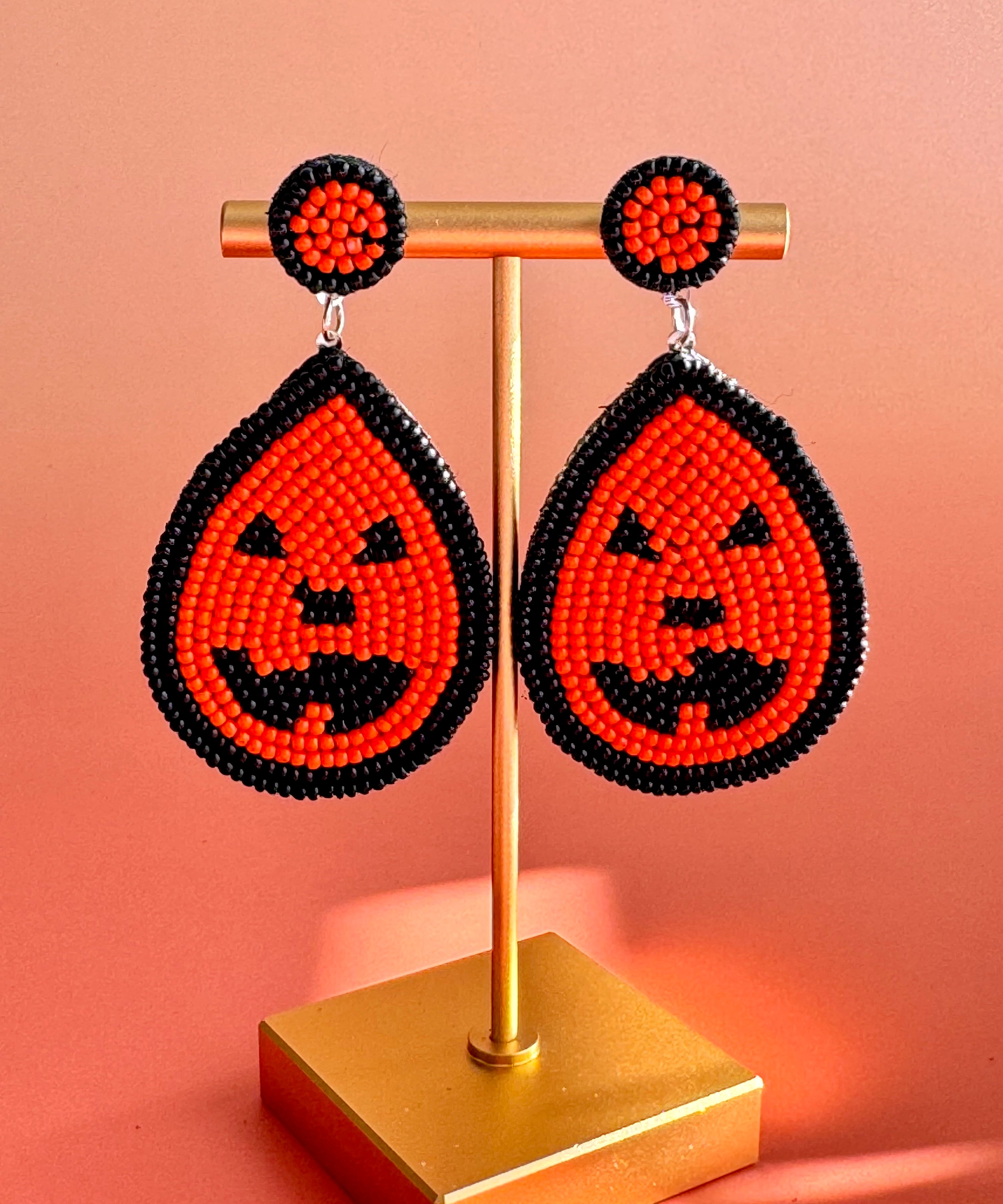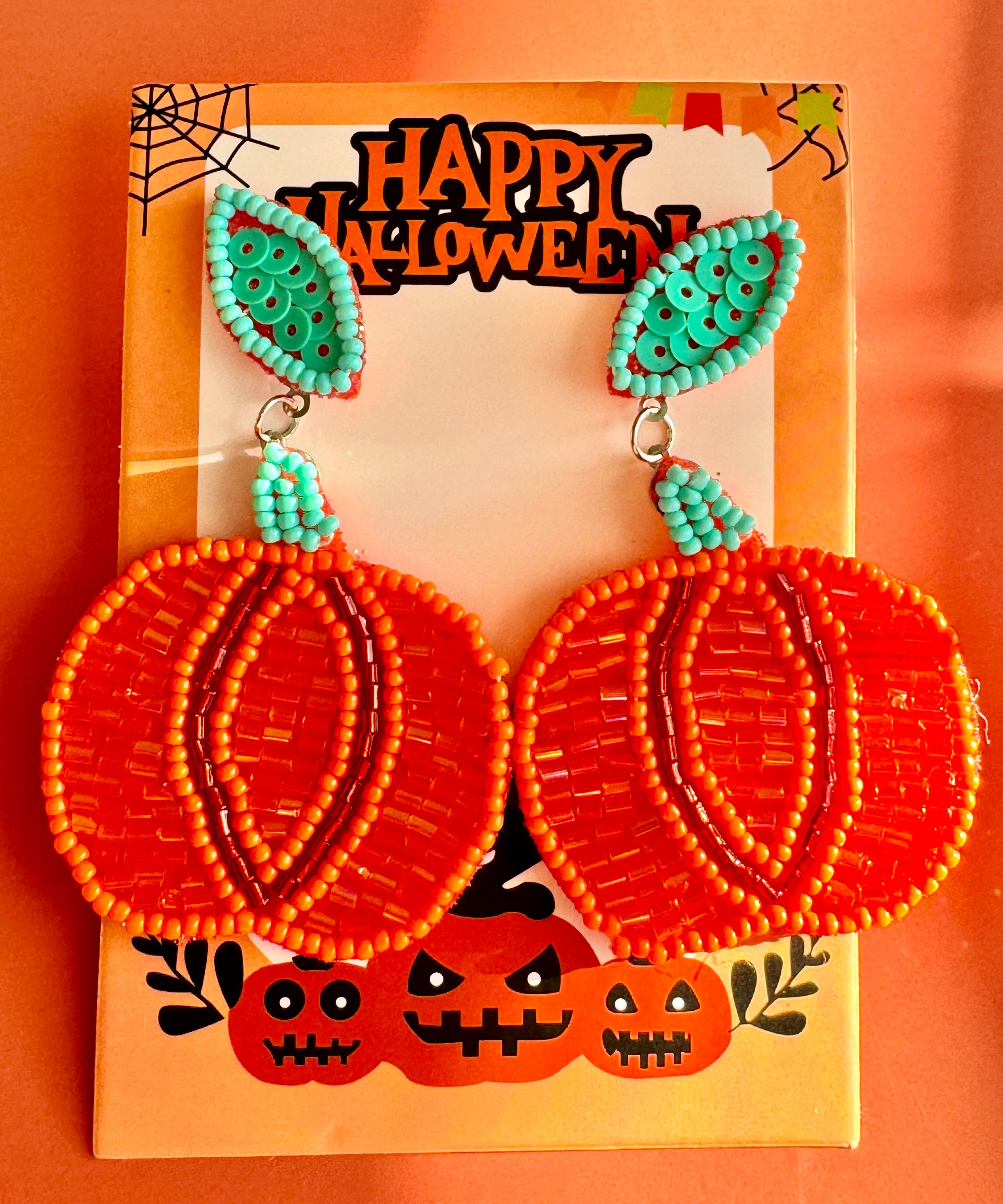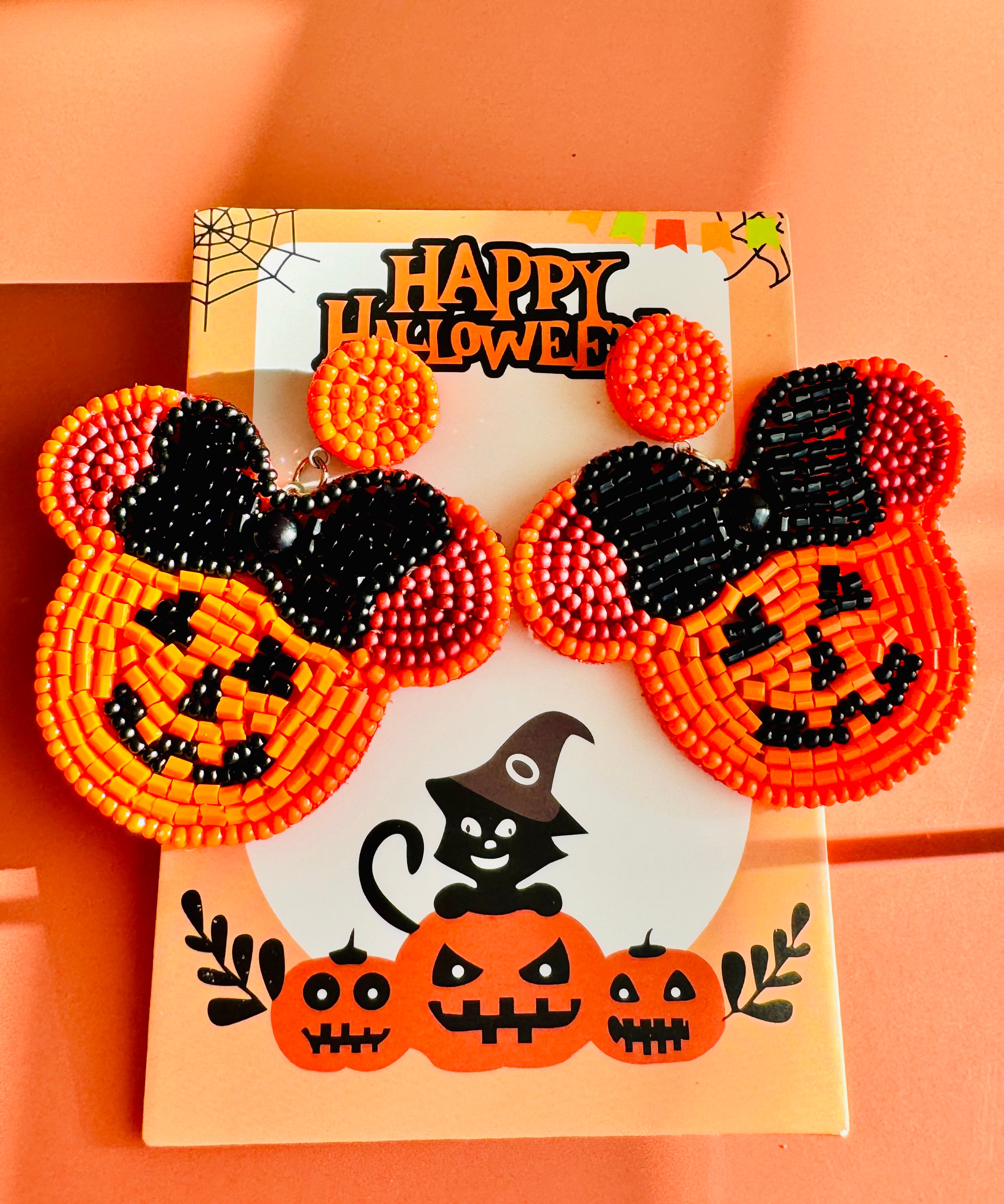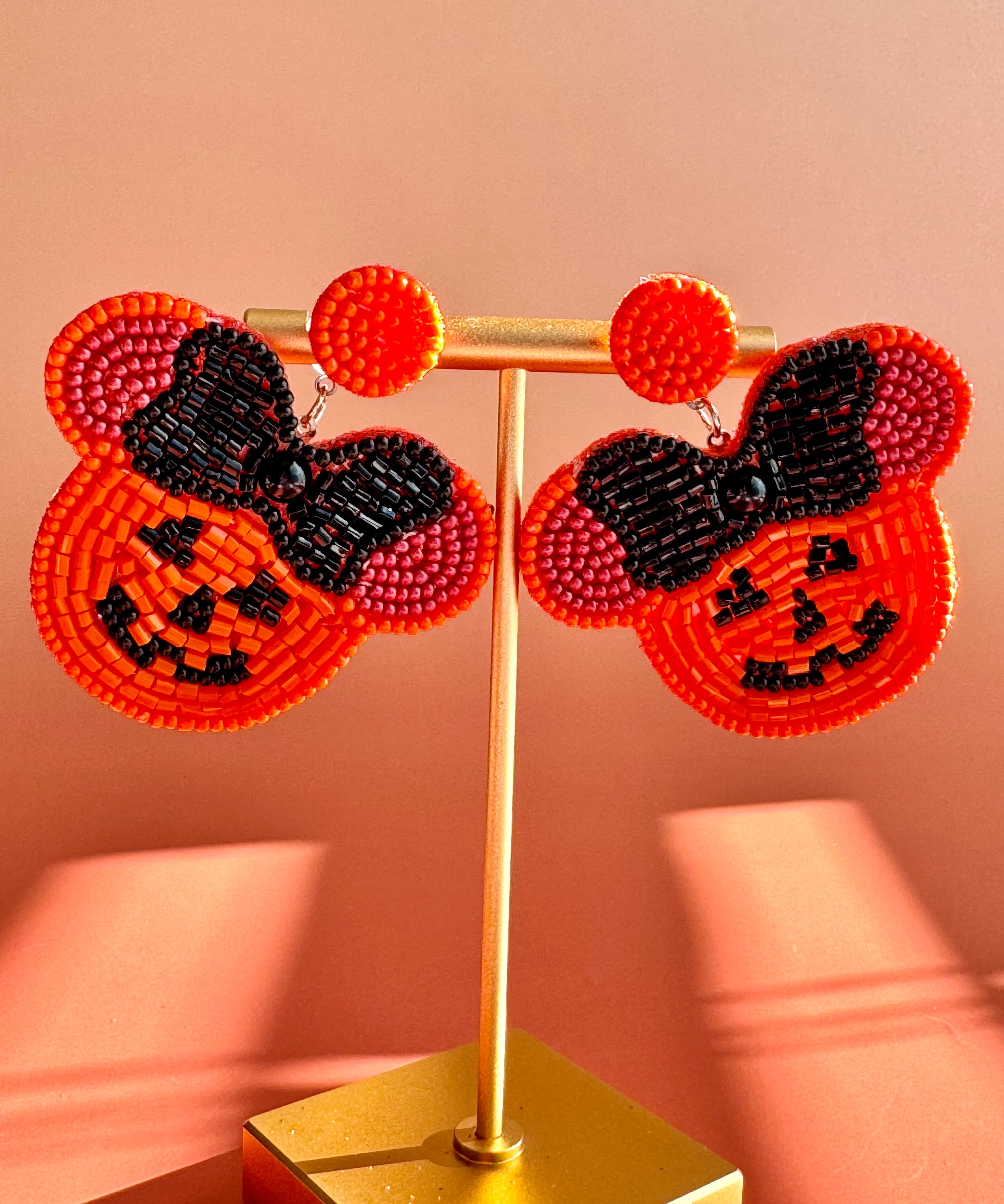 Handmade Minnie Pumpkin Earrings: Beaded Jack O' Lantern Dangle