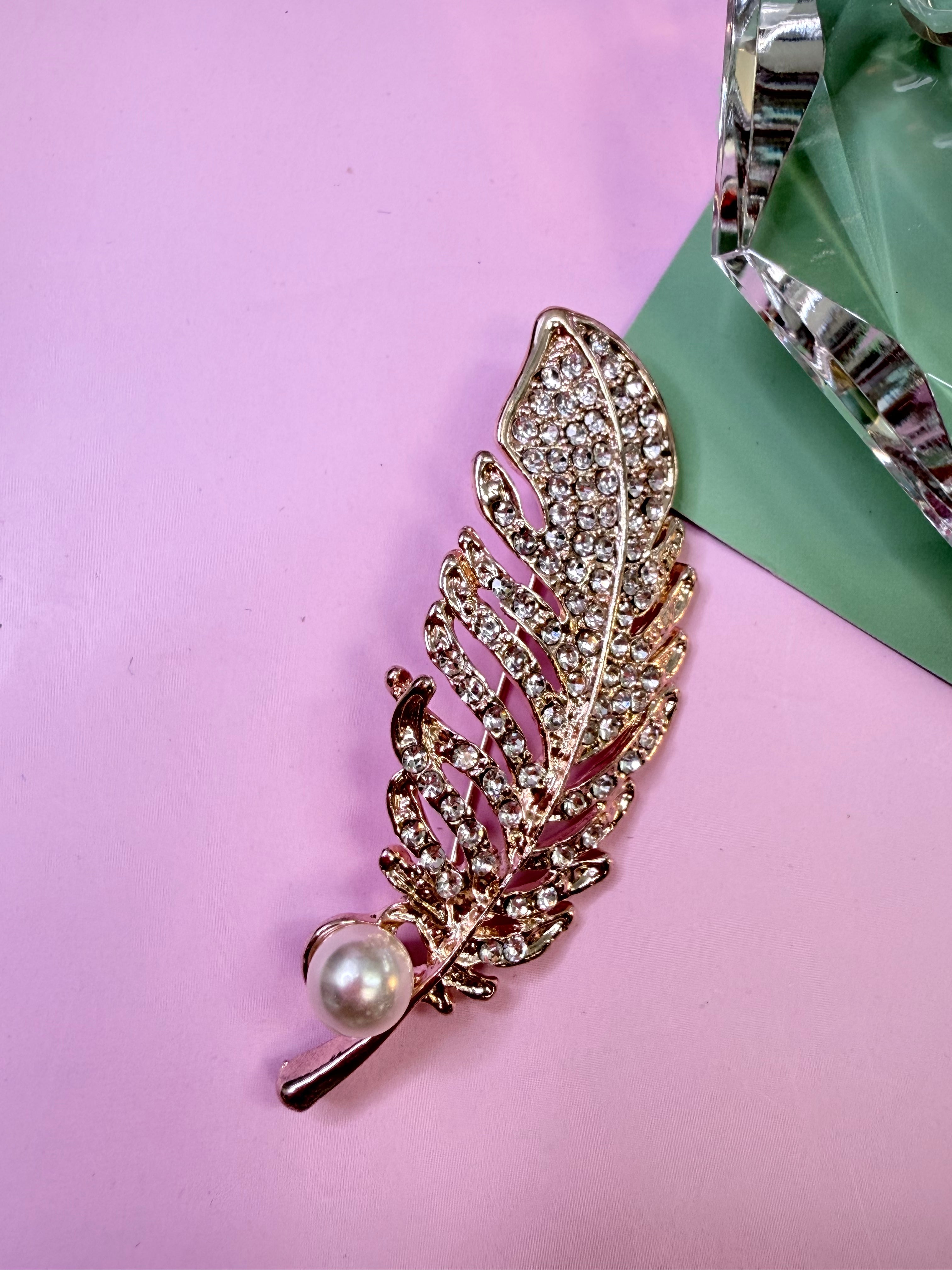 Crystal Feather Pearl Brooch