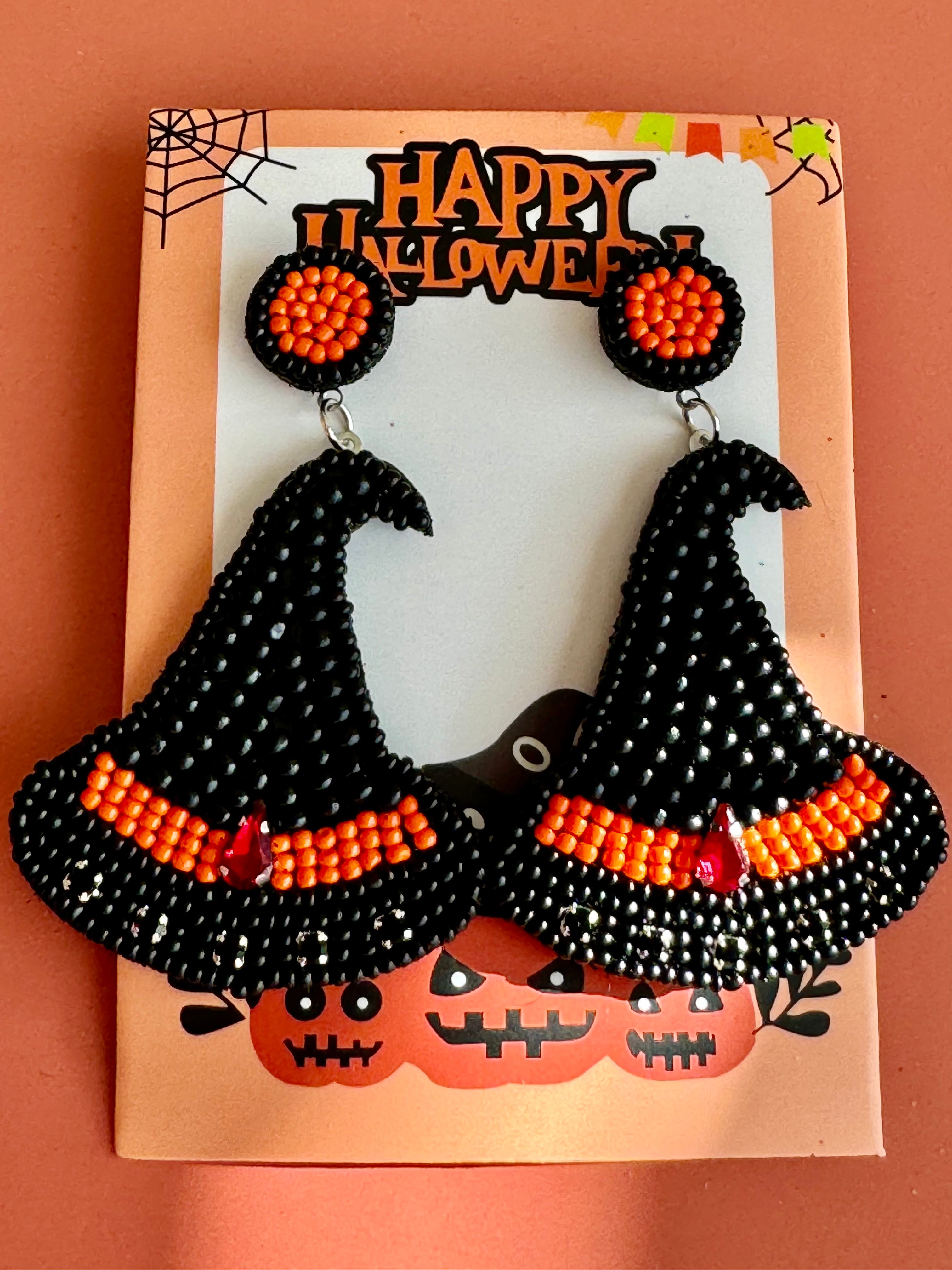 Get into the Halloween spirit with these NEW handmade boho Witch Hat seed beads beaded earrings. Perfect for costume parties and holiday festivities!