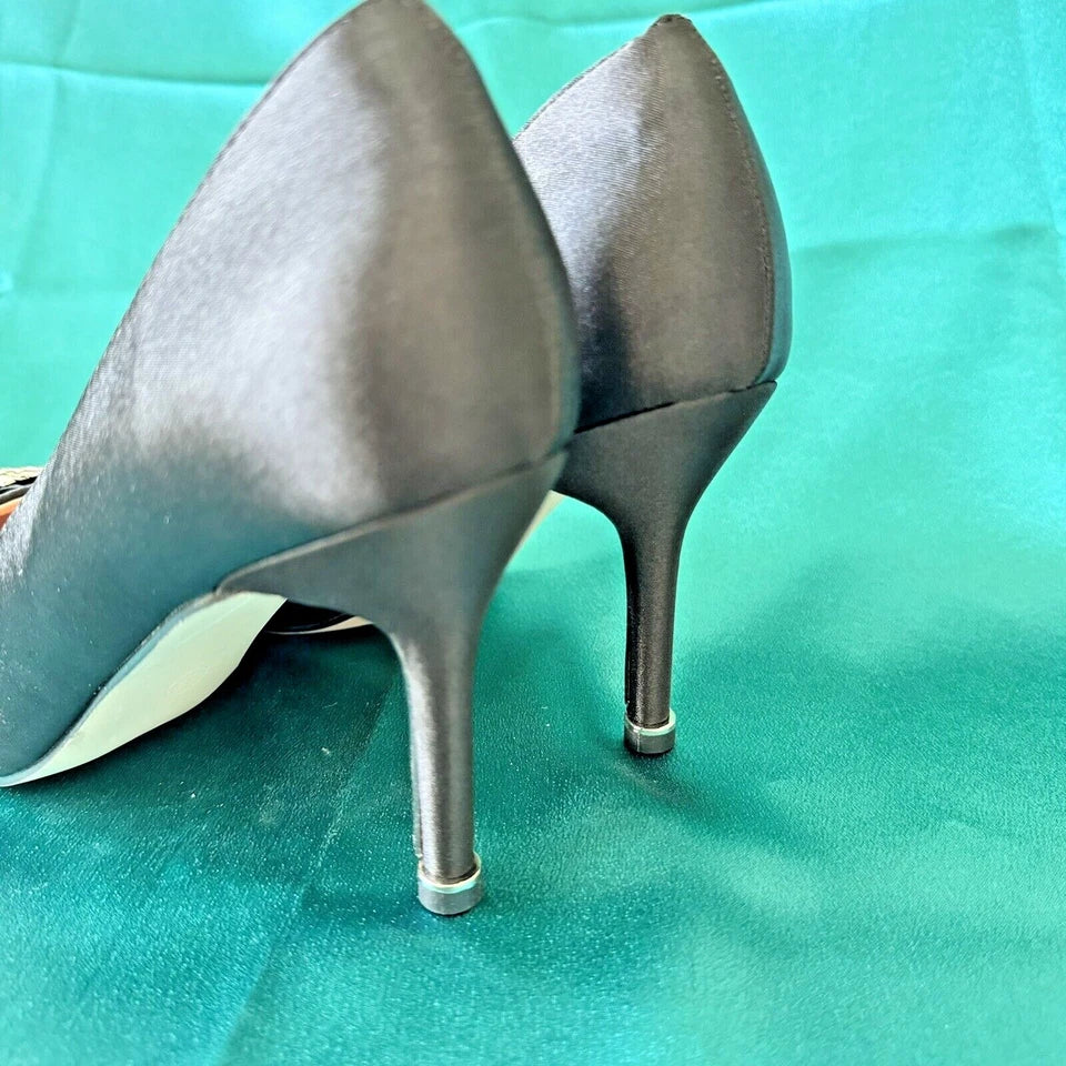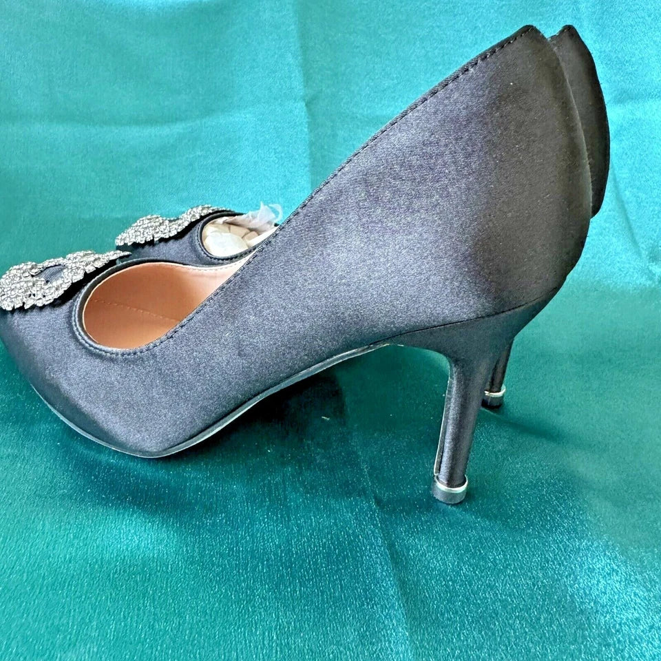 Jeweled Buckle Stain Black Hangisi High Heels 4" Pump Crystal Shoes US 6.5