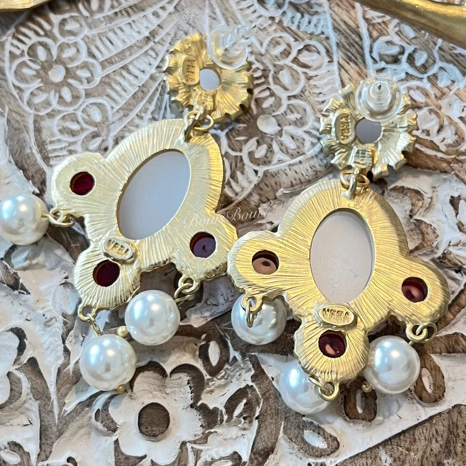 These earrings exude elegance and style, boasting a unique charm that will complement any outfit. The gold-plated base metal and exquisite craftsmanship ensure that these earrings will remain in your collection for years to come. Add a touch of sophistication to your wardrobe with these vintage earrings today.